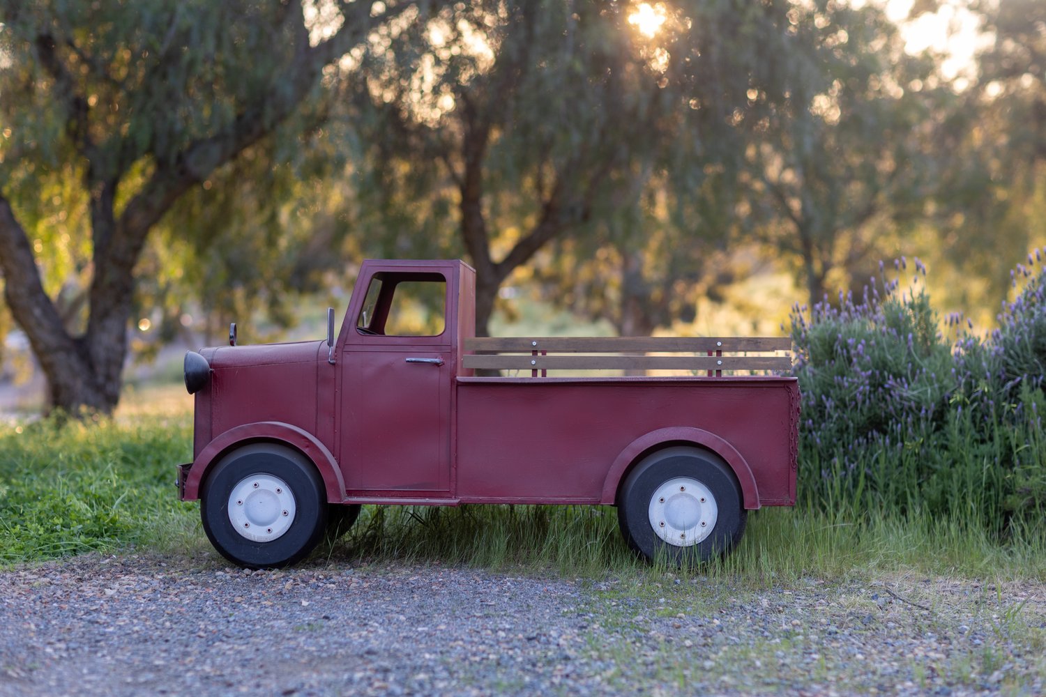The Little Red Truck set is a touch of rustic countryside charm. Styled with natural textures like straw, wooden crates, baskets, and seasonal accents, the truck creates a playful scene designed especially for toddlers and young children.